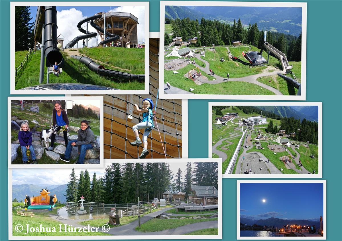 Am Dienstag den 31. Juli standen wir ca. um 8:00Uhr in unserer Ferien-Wohnung in Davos auf. Wir zogen uns an und assen mit unserem Freund Küsu Zmorge. Meine Eltern fuhren mit meinen beiden jüngsten Schwestern mit dem Zug nach Klosters. Jessica und Ich fuhren mit Küsu und seinem Auto nach Klosters. Um ca. 11:00Uhr waren wir dann alle auf der Madrisa. Wir gingen dann in den Sagenpark, der Hauptteil des Madrisa-Land. Da an diesem Tag die 1. August-Feier war, gab es einen Spielpass mit dem man an verschiedene Posten gehen konnte um eine Aufgabe lösen, sowie die Attraktionen wie Flying Fox und Pony reiten dabei wahren. An jeden Posten waren HC Davos Spieler. Zuerst gingen wir auf Flying Fox. Das war cool! Dann gingen wir Büchsen werfen und danach gingen wir Pfeilbogen werfen, Heugabeln werfen, Pony reiten, Fahnen schwingen und noch ein Posten wo man einen Fünflieber in einer Schüssel kreisen musste. Nach diesen Posten liefen wir zum Öpfelsee Hoch. Dort führten wir mit dem Pedalo im See. Das war auch noch auf dem Spielpass. Nachher um ca. 13:00 war die offizielle Einweihung des Öpfelsee und deren Kneipanlage. Nach der Eröffnung kneipten Jennifer, Jessica und Ich um den See. Nachher warteten wir auf dos Hotsch-rennen. Um 13:30Uhr war es soweit: Hacher der Inhaber des Madrisa-Land und Arno, der Hockey-Trainer Kneipteten um die Wette. Arno gewann. Nach dem Rennen gaben wir den Spielpass ab(da es ein Wettbewerb war) ab und wir gingen in den Sagenpark. Dort Rutschten wir die Verschiedenen Rutschen hinunter. Es gab die Alphornrutsch von der man von 17m auf ein Luftkissen sprang, die 70m lange Riesenrutsche, die Horror-rutsche mit einer Steil-Kurve und die kleine, blaue Rutsch. Ich rutschte alle Rutschen im Verlauf des Tages min. zwei Mal. Danach gingte ich den Sagenpark erkunden. Es hat viele tolle Dinge im Madrisa-Land wie zum Beispiel eine Höhle mit Goldschätzen. Danach um 15:00 war die Verlosung der Hockey-Sachen. Mein Spielpass wurde leider nicht gezogen. Nach der Verlosung gingten wir um ca. 17:30Uhr wieder in den Sagenpark und stauten den Bach. Unten hatte es noch einen kleinen See mit einem Karusell. Ich ging auch drauf aber das Wägeli im Wasser kippte und ich war an meiner Hose Nass. Zum Glück hatten wir lange Hosen dabei und ich konnte sie wechseln. Nachher um 19:00 gingen wir Essen. Nach dem Essen gingten Jessica, Jennifer und Ich in den Streichelzoo. Dort hatten wir die Tiere gelockt mit Gras. Es war lustig zwischendurch hatten wir noch eine Glace gegessen. Dann um 21:30 war noch der Lampionumzug. Dann um 22:00 gingen wir mit der Gondelbahn hinunter und glücklich nach Davos.